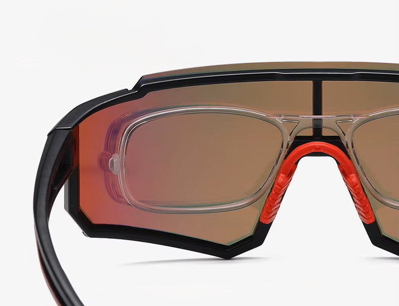Este diseño de gafas deportivas cuenta con un marco de alta calidad, ofreciendo un estilo moderno y aerodinámico. pueden adaptarse para su uso con lentes de vista, convirtiéndolas en una opción versátil tanto para actividades deportivas como para la corrección visual. La estructura permite comodidad y un ajuste seguro, brindando una excelente protección contra la luz sin comprometer la visión.